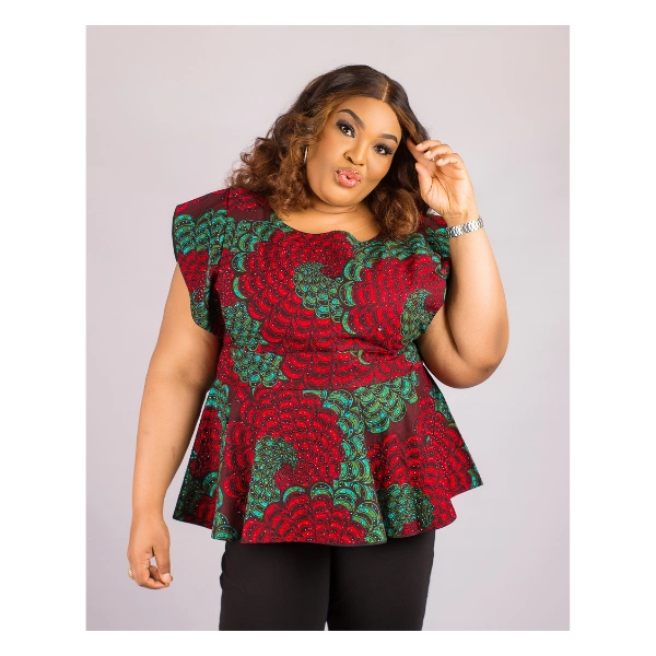 Made from a vibrant wine and green mix Ankara fabric, this top is richly decorated with Swarovski crystals perfectly matched to each color, adding a luxurious sparkle that shines with every movement.